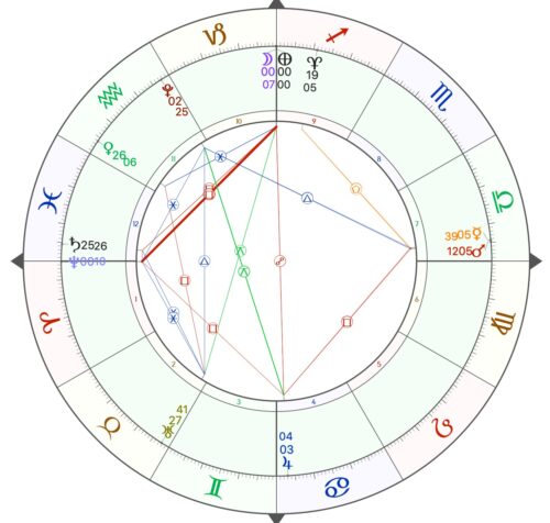– challenged by the decrees enjoined by the powerful square to the Saturn-Neptune dyad, here both in Aries,