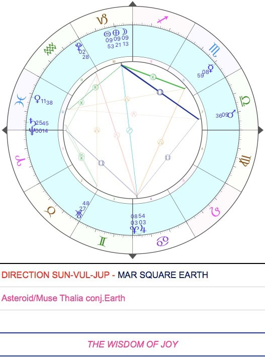 In this regard, the Heavens of Causes today offer us the opportunity to celebrate a luminous event: the heliocentric alignment between our beloved Earth and the asteroid/Muse Thalia in the space conditioned by the energy of Capricorn, the Gate of the Gods, the Sign considered to be the pathway of the ascent of souls towards their celestial abode, as well as that symbolic place where detachment from matter takes on the appearance of initiation. For the age of Aquarius, this is the main constellation transmitting the 7th Ray that promotes initiation and the defeat of materialism.