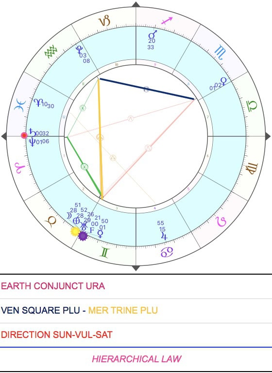 Today, the two heavenly Spouses [1], Earth/Gaia, “She who sings”, and Uranus, divine image of the starry Heaven, united in sacred bond by the Sun, radiate the joy of their nuptial Agreement from the luminous field of Taurus (heliocentric perspective).